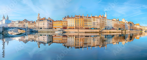 Naklejka premium Panoramic view of the city center and river with its historic buildings in Lyon