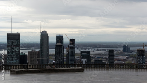© Mltz, Obraz premium Panoramic view of the city center of Montreal from the Mount Royal Chalet’s lookout, west of Downtown Montreal in Quebec, Canada