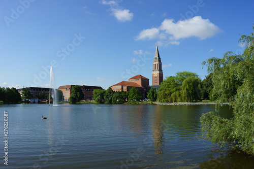 Fototapeta premium Panoramic view of the city hall against the lake, Kiel