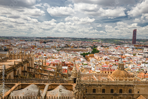 Obraz premium Panoramic view of the city of Seville from the buttresses of the gothic roof...