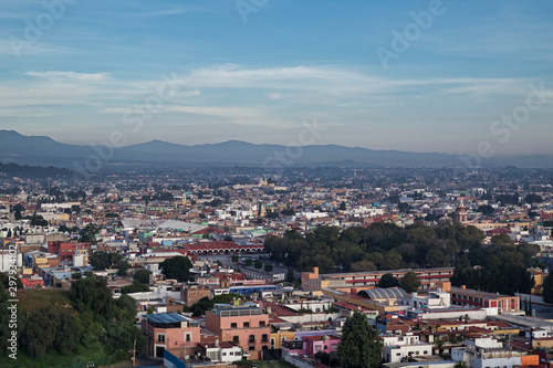 Naklejka premium Panoramic view of the city, Popocatepetl volcano, Cholula, Puebla, Mexico