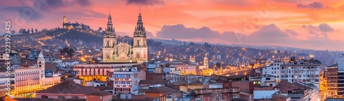 © Charm Pixel, Fototapeta premium panoramic view of the cityscape at dusk with hues