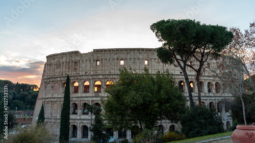 Fototapeta premium Panoramic view of the Colosseum amphitheater in Rome at sunset