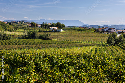 © bepsphoto, Fototapeta premium Panoramic view of the Cormons, typical local products vineyards and wines.