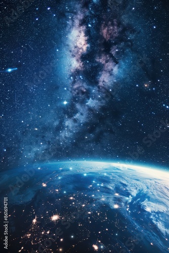 Obraz premium Panoramic view of the Earth and galaxy with stars