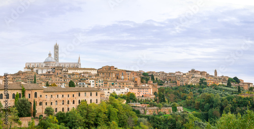 Fototapeta premium Panoramic view of the historic city of Siena with the cathedral on a cloudy day in Tuscany, Italy.