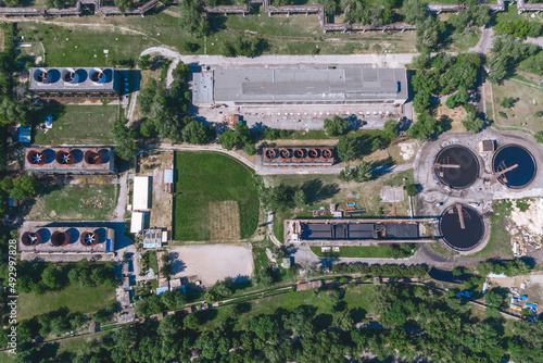 © Denis Chubchenko, Obraz premium Panoramic view of the industrial city of Nikopol in Ukraine. Beautiful landscape in the city. industrial area