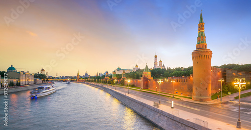 Fototapeta premium Panoramic view of the Moscow river and the Kremlin