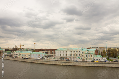 © Inna, Naklejka premium panoramic view of the Moskva River and the Sofia embankment with historical buildings against a cloudy sky and space to copy in Moscow Russia