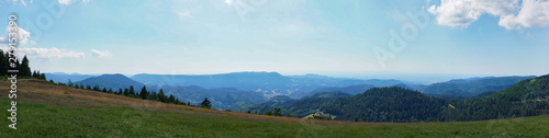 Obraz premium Panoramic view of the mountains under the blue cloudy sky in summer