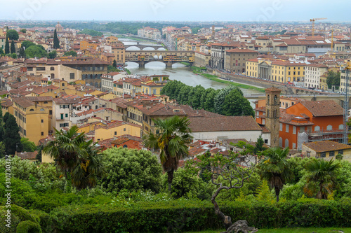Fototapeta premium Panoramic view of The Ponte Vecchio or Old Bridge in Florence Italy, famous...