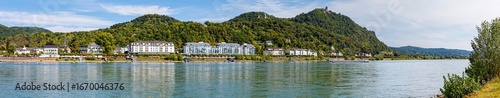 © magoodesign, Naklejka premium Panoramic view of the Siebengebirge mountains, Rhine Valley and Drachfels castle ruins near Königswinter in Germany