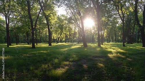 © MSH, Fototapeta premium Panoramic view of the sun shining through the tree