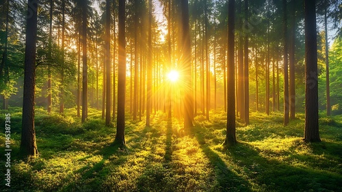 © MSH, Fototapeta premium Panoramic view of the sun shining through the tree