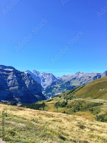© Lunar.Studio, Fototapeta premium Panoramic view of the Swiss Alps on a clear summer day