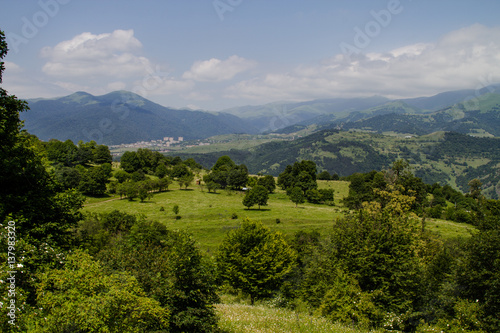 © Vladimir Dziuba, Obraz premium Panoramic View of the Town in the Foothills