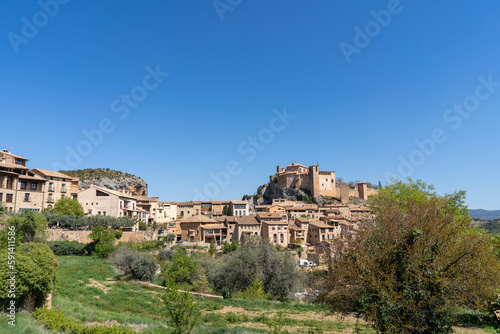 © Fernando, Fototapeta premium Panoramic view of the town of Alquezar where the hanging footbridges over the Vero river are located.