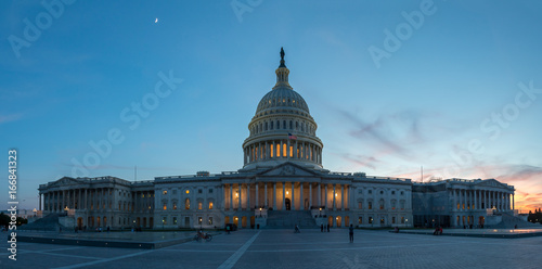 Obraz premium Panoramic View of the US Capitol with Moon on the Sky
