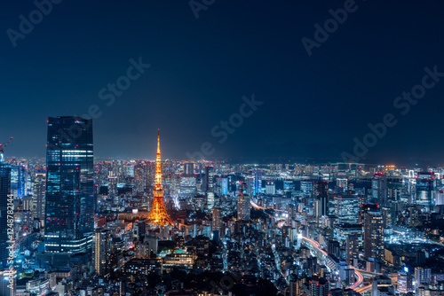 © hit1912, Fototapeta premium Panoramic view of Tokyo central area with Tokyo tower at night