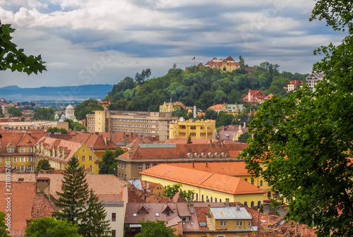 © cristianbalate, Fototapeta premium Panoramic view of traditional house architecture and famous historical fortress