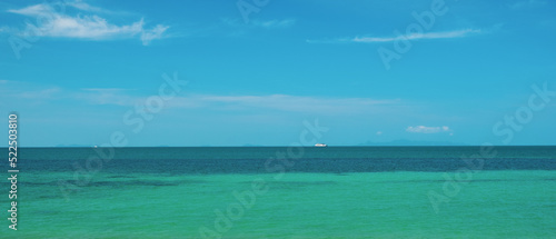 © spaxiax, Fototapeta premium Panoramic view of tropical blue calm sea and clear sky in Thailand.