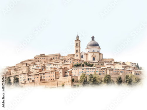 © Artemiy, Obraz premium Panoramic view of Urbino city, Italy
