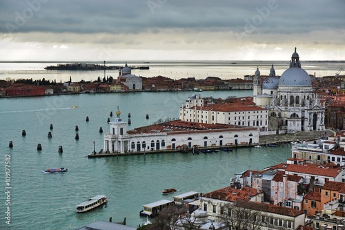 Obraz premium Panoramic view of Venice from the Campanile on a cloudy day