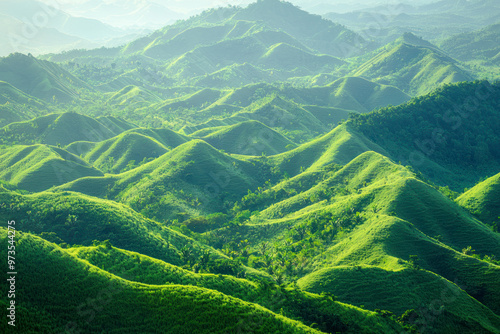 © Hunman, Fototapeta premium Panoramic View of Verdant Hills and Valleys.