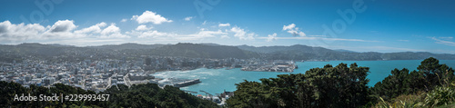 Naklejka premium Panoramic View of Wellington Harbour from Mount Victoria, Wellington, New Zealand