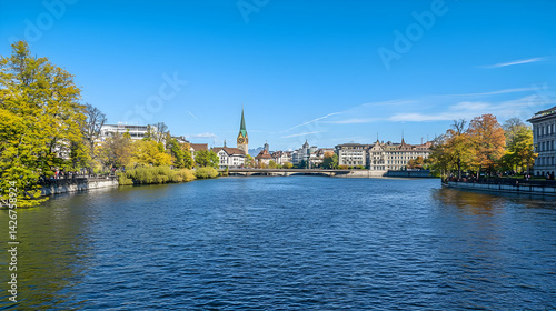 Obraz premium Panoramic View Of Zurich Lake In Autumn