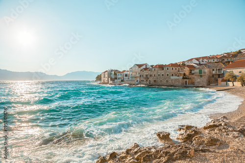 © niyazz, Fototapeta premium Panoramic view on a beautiful beach of a small town Postira - Croatia, island Brac