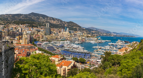 © Vladimir Liverts, Naklejka premium Panoramic view on bay of Monaco from top