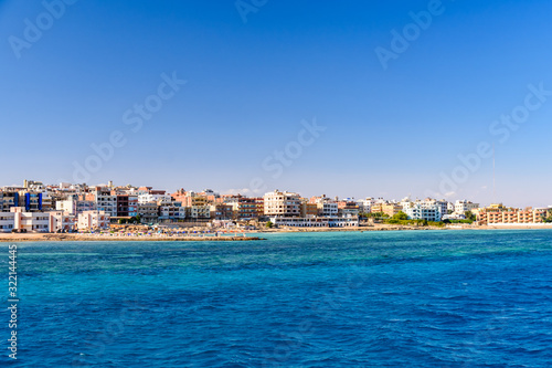 Obraz premium Panoramic view on Hurghada city from the Red sea