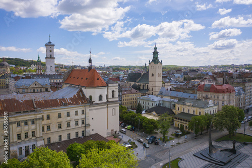 © Ruslan, Obraz premium Panoramic view on Lviv from drone