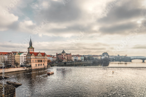 Obraz premium Panoramic view on Prague Historical Gothic Medieval castle and church...