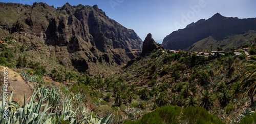 Fototapeta premium Panoramic view on the Macizo de Teno mountains, Masca Gorge. View from the village of Maska. Tenerife. Canary Islands. Spain.
