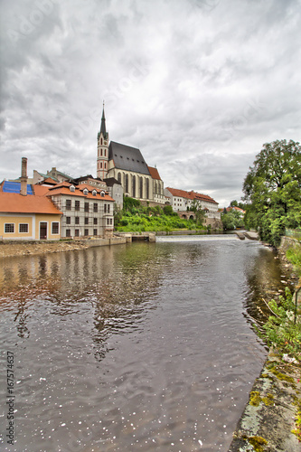 Fototapeta premium Panoramic view over Cesky Krumlov with Moldau river, Czech Republic