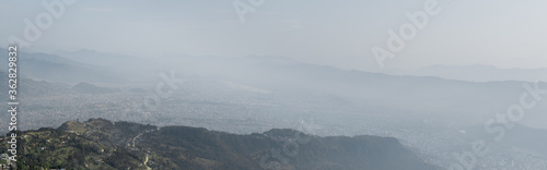 Naklejka premium Panoramic view over Pokhara and mountains, Nepal from Sarangkot hill