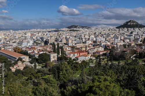 Obraz premium Panoramic view over the old town of Athens from Acropolis hill. Athens, Greece.
