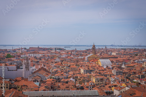 Fototapeta premium Panoramic view over Venetian rooftops and lagoon