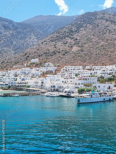 © Aleksandar, Fototapeta premium Panoramic view to Kamares village and port at Sifnos island, Cyclades, Greece