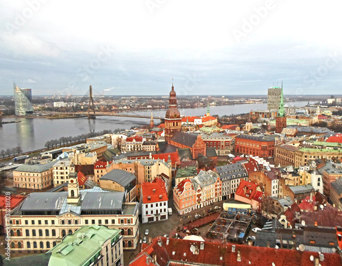 Obraz premium Panoramic view to the city center of old Riga from the Saint Peter's Church's tower, Latvia