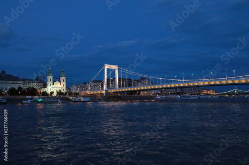 Obraz premium Panoramic views of night bridges through Danube with illumination.