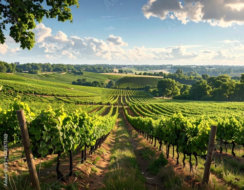 © Mili, Fototapeta premium Panoramic vineyard landscape at sunset (2)
