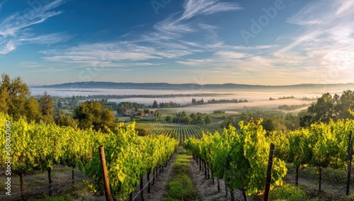 Fototapeta premium Panoramic vineyard vista at sunrise