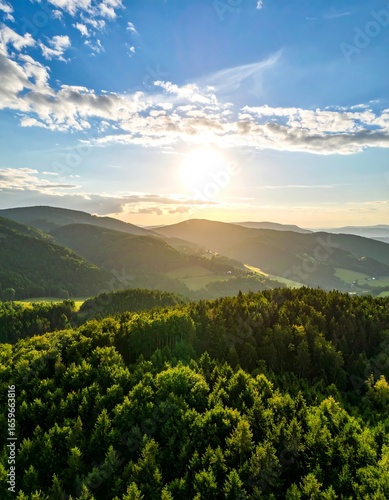 © Kanan, Fototapeta premium Panoramic vista of rolling hills at sunset