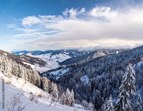 Fototapeta premium Panoramic winter mountain vista