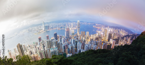 © ymgerman, Obraz premium Panoramiczne przejście z Hongkongu z dnia na noc