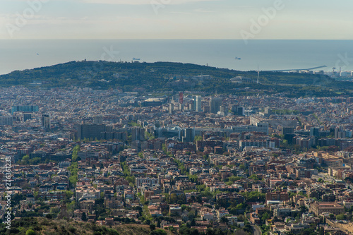 Obraz premium Panoramiczny widok na Barcelonę z Tibidabo w Hiszpanii