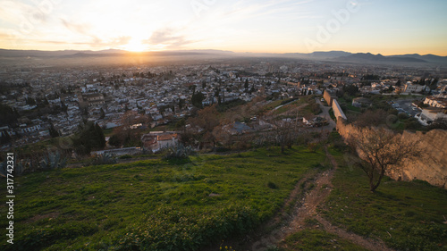 Obraz premium Panoramiczny widok na miasto Granada z punktu widokowego San Miguel